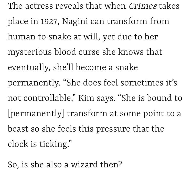 Анон, ну ты очень с мороза, Нагайна проклята, она превращается в змею, но однажды не сможет вернуться в человеческий облик.