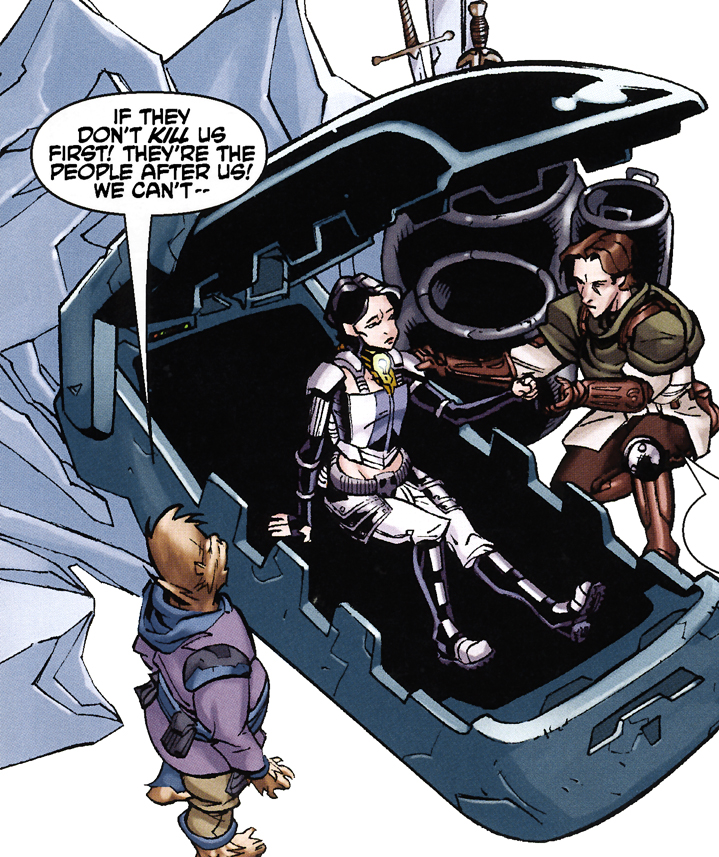 Я дочитал, хотя с окончанием арки Хаазина там сюжет как-то скатился в сраное непойми что и (главное) непойми зачем. В итоге Демаголыч суициднулся об Шантик/Чантиквэ, а добрый Ролан Дайр обличил преступления реваншистов, обозвал их чудовищами и нашёл Джараэли маму и папу. Керрик отказался быть джедаем и станет канцлером, а Джараэль пойдёт за него замуж.