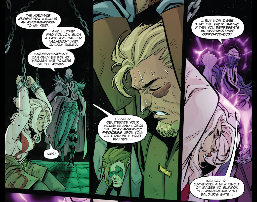 Вообще, этот чувак довольно интересно приравнивает иллитида с магией сразу к алхуну (иллитиду-личу, то бишь нежити, которую они так ненавидят). Ома не пинали и не били - он сам сбежал, как только смог, потому что ему в колонии (то ли Абсолют, то ли соседней) не очень нравилось, да и быстро смекнул, что иначе его "отсеят" как дефектного. И сразу же пристроился к обычному личу - так что был на полпути к алхуну)