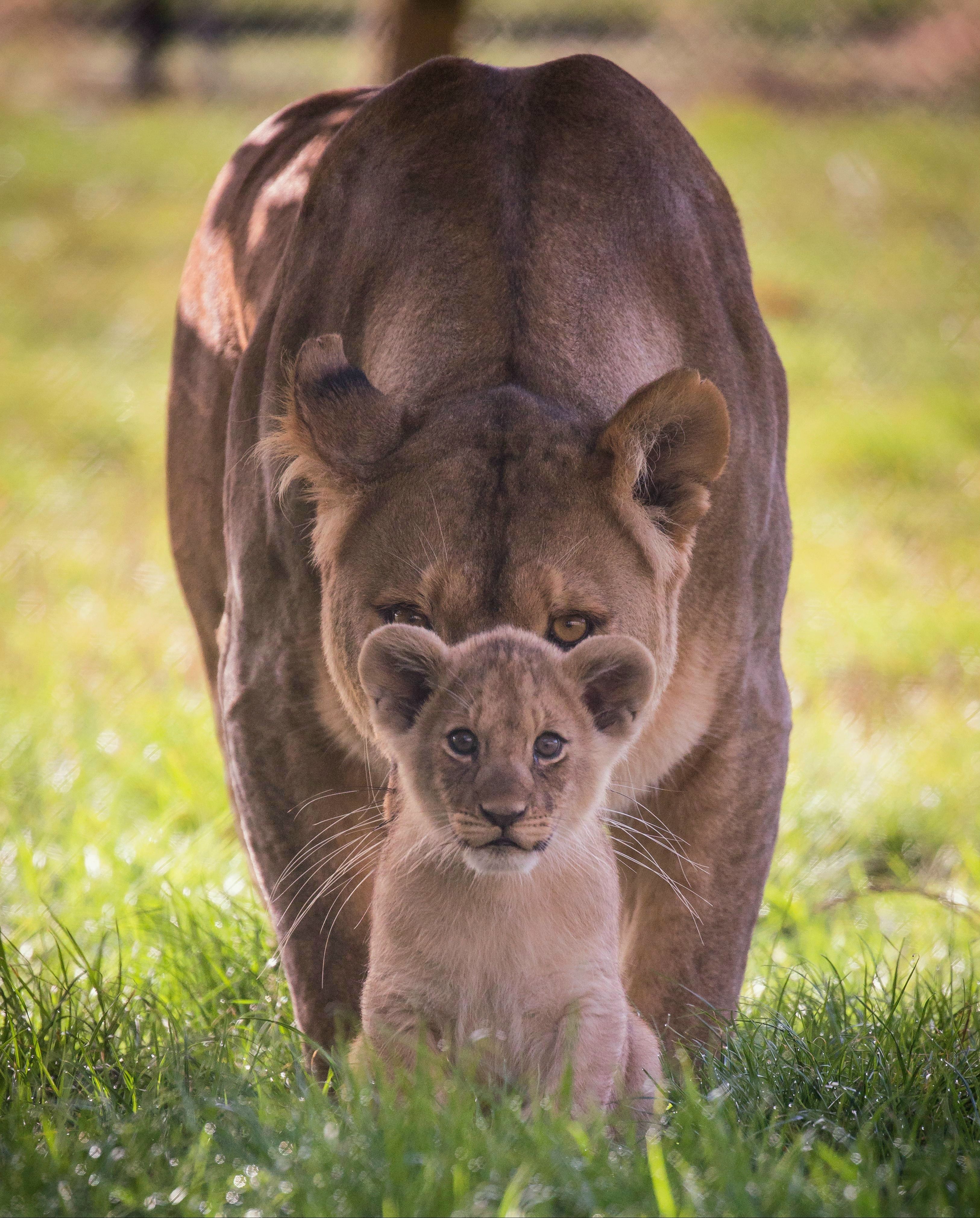 так львица не вылизывает на фотке, а пугает всех, кто может потенциально обидеть котеночка)