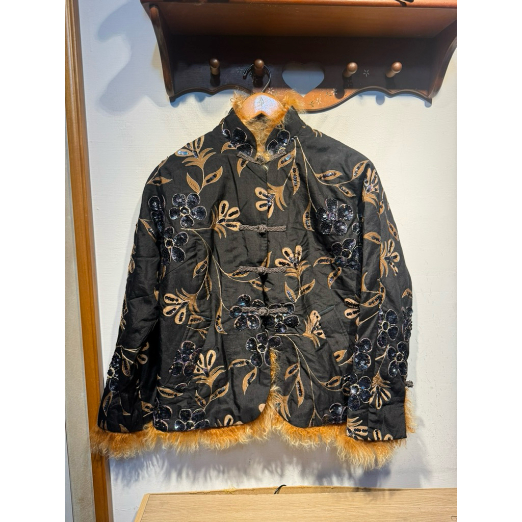 Кардиган alexander wang (300), я его вытащил наощупь по кашемировой текстуре и обнаружил интересный ассиметричный крой. Джинсы levi’s японского производства (800), в Японии и у нас такие сразу хватают в винтажках, а тут висели даже несколько на выбор, вообще ливайсов за такую цену довольно много, я смотрел прицельно только японские. Пальто 23ku (200), это японский бренд, читается как vingt-trois arrondissements (этой район Токио), хорошее базовое коричневое пальто из шерсти, долго думал, тащить или нет, но жадность победила. Пиджак с мехом isabelle wen (1100), это тайваньский бренд, визуально это парчовый пиджак с мехом в китайском стиле, давно хотел такой, думал брать на алике, но дизайнерская вещь всегда лучше. Что-то типа такого