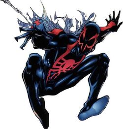 По канону у Мигеля из подушечек пальцев выдвигаются такие когти-крючки-лезвия, которыми он лазит и которыми все дерет. Ещё у него клыки с ядом.