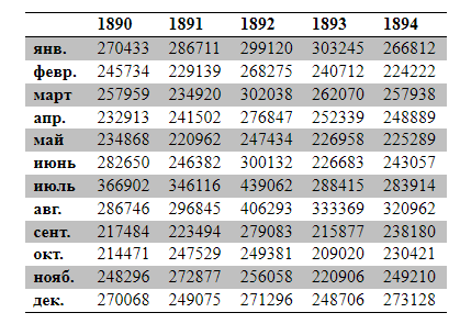Анон вот таблица смертности по годам с разбивкой по месяцам. Попробуй найти, массовую смертность в 1891 году