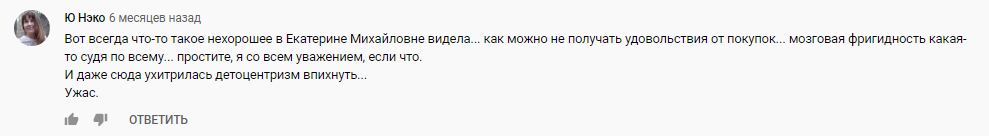 Вот всегда что-то такое нехорошее в Екатерине Михайловне видела... как можно не получать удовольствия от покупок... мозговая фригидность какая-то судя по всему... простите, я со всем уважением, если что.